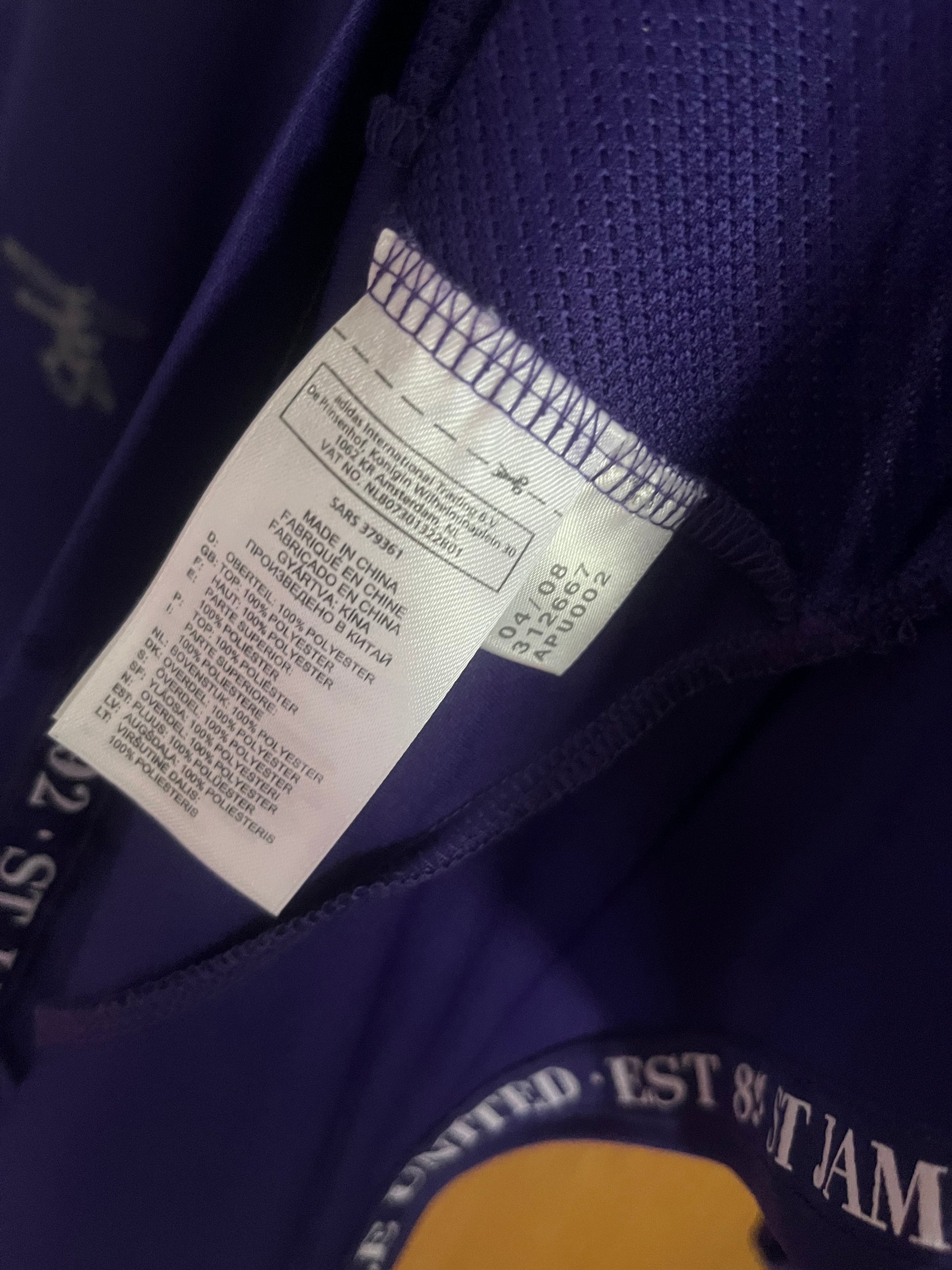Condition: 4/10 - this shirt has previously been in a frame at some point in its life, leading to tape residue and sticky spots where it was stuck in the frame. Should this item be re-framed, these spots would be un-noticeable once again
